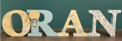 Our beautiful bespoke handmade wooden letters are hand painted and decoupaged.