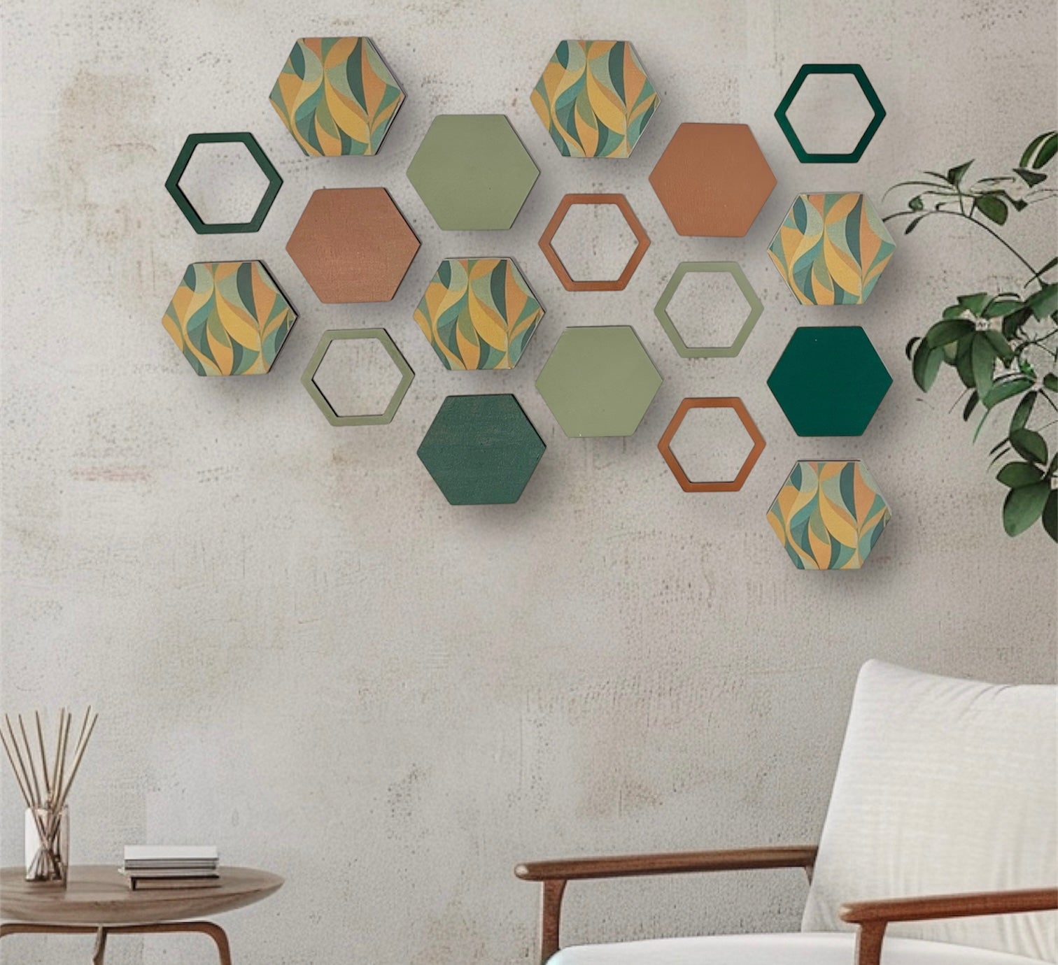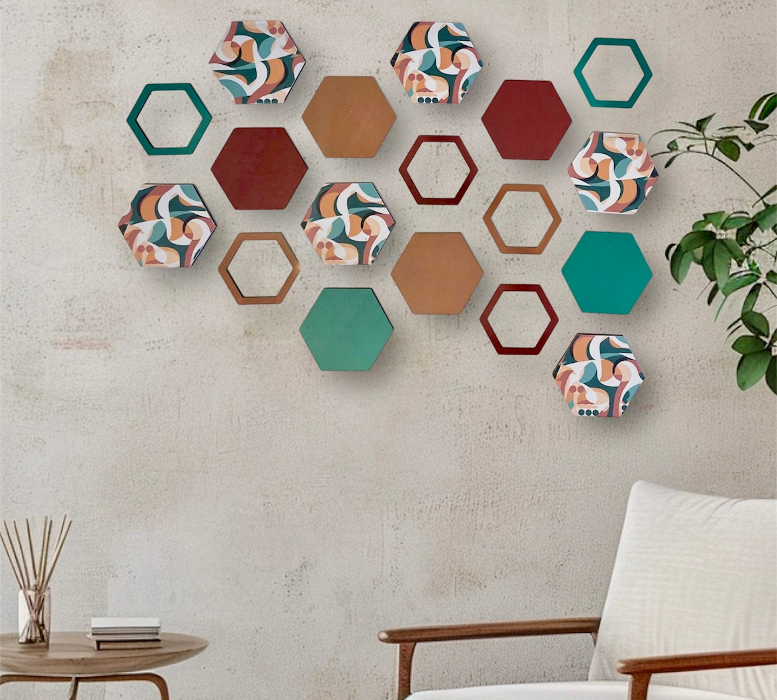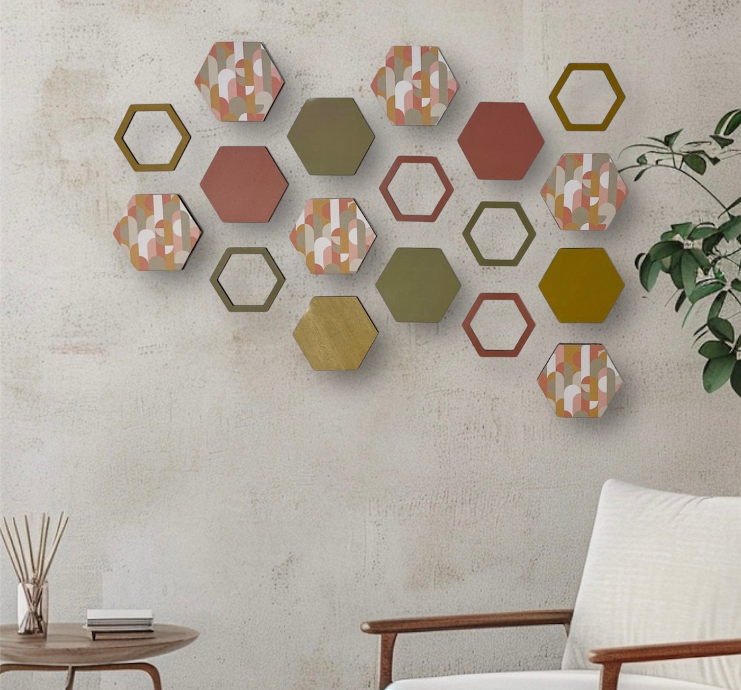 Terracotta hexagon wall art